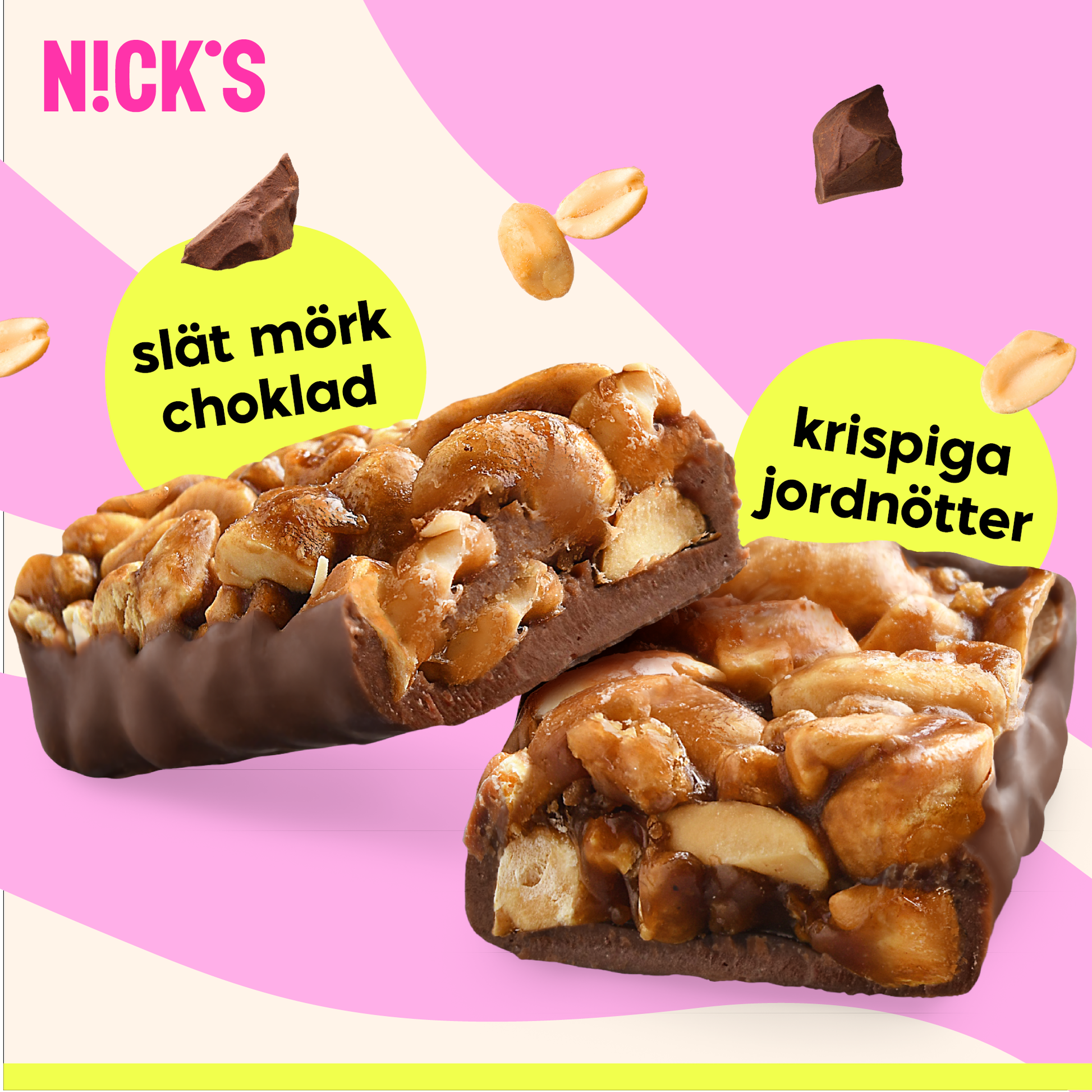 Jordnötter (41%) , kakaosmör, polydextros (fiber), cikoriarotfiber, sötningsmedel (erytritol), kakaomassa, sötningsmedel (xylitol), fuktighetsbevarande medel (veg. glycerol), löslig majsfiber, soja krisp ( soja proteinisolat, tapiokastärkelse, stabiliseringsmedel: kalciumkarbonat), salt, emulgeringsmedel (solroslecitin), naturlig arom, sötningsmedel (steviolglykosider).