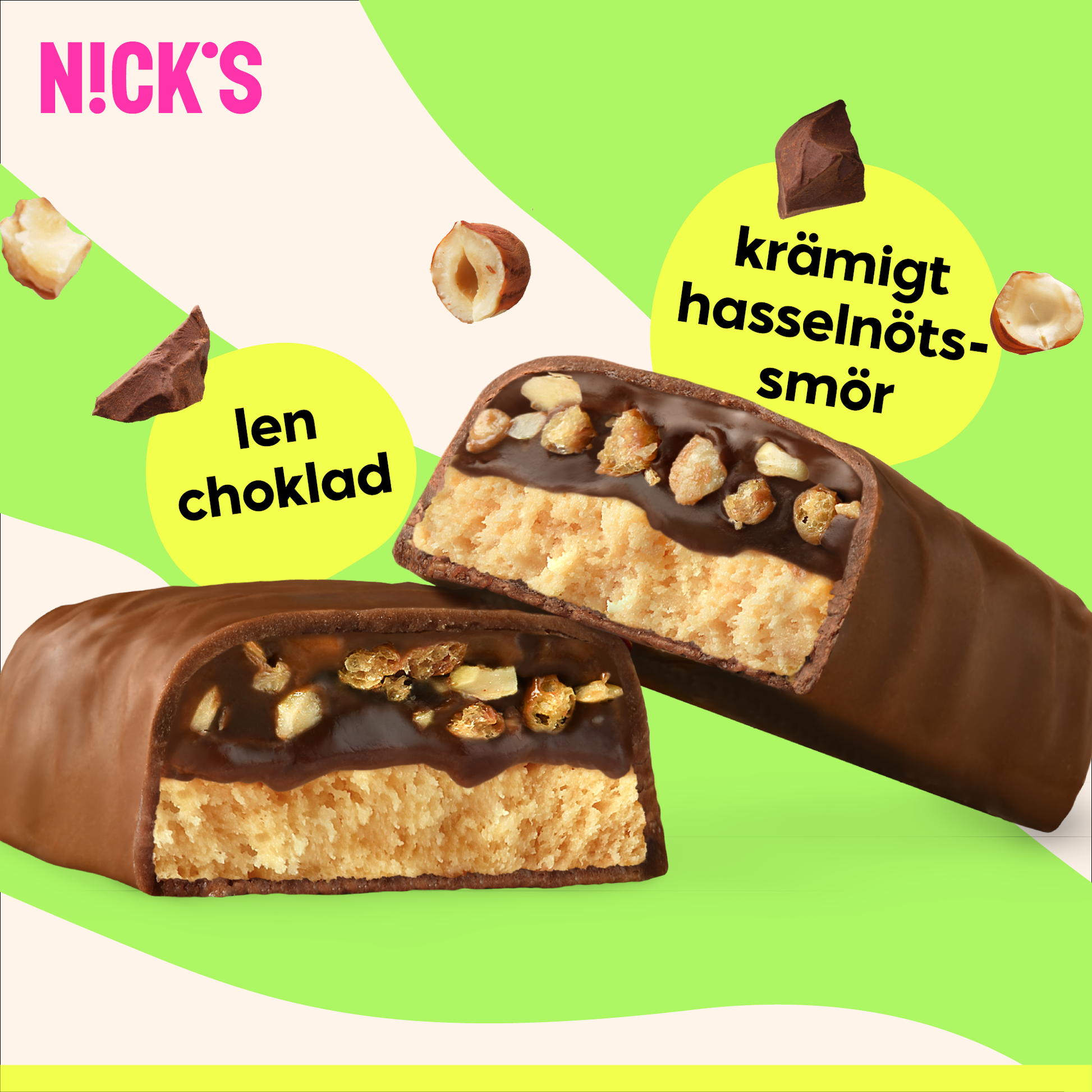Protein bar hazelnut chocolate is the perfect combination of creamy hazelnut butter with chunks of hazelnuts and soy crisp, covered in a layer of smooth milk chocolate.